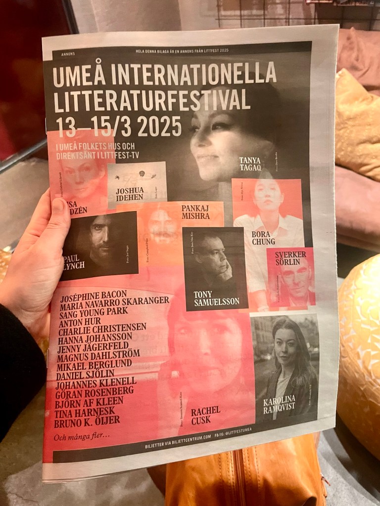 Det var dags för Littfest och i hotellobbyn välkomnade festivaltidningen min kollega Carin och mig. Tre av Tranans författare skulle medverka i programmet, Tanya Tagaq, Bora Chung och Sang Young Park.