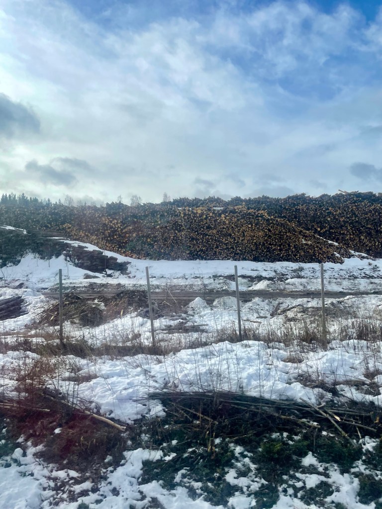Och igår gick tåget hemåt igen. Någonstans i höjd vid min hemby skymtade jag dessa avverkade trädstammar, något som också är en vanlig syn i Agnäs då det finns en stolpfabrik där. Så hemlängtan till byn var större än på länge. Men snart kommer sommaren och jag åker dit, länge! Första ska bara lite vår i Nacka klaras av.