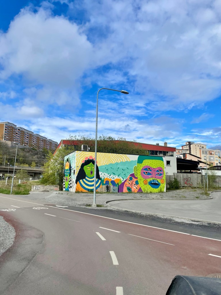 Sedan raka vägen hem, förbi väggmålningen som för mig markerar att jag lämnat Stockholm och entrat Nackaland.