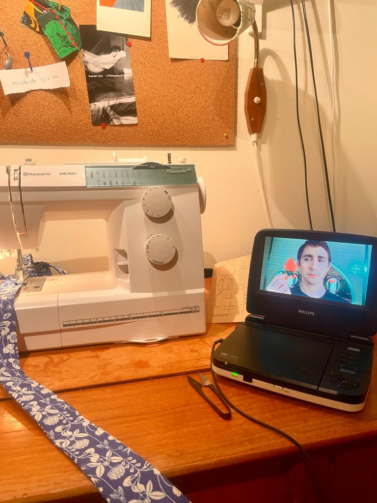 Det blev fredagskväll och jag satt i den mycket välstädade verkstaden och sydde i sällskap med Ned och Pushing Dasies.