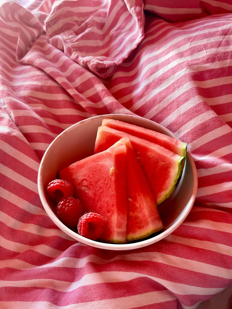 Väl hemma fick jag en redig fruktstund i sängen.