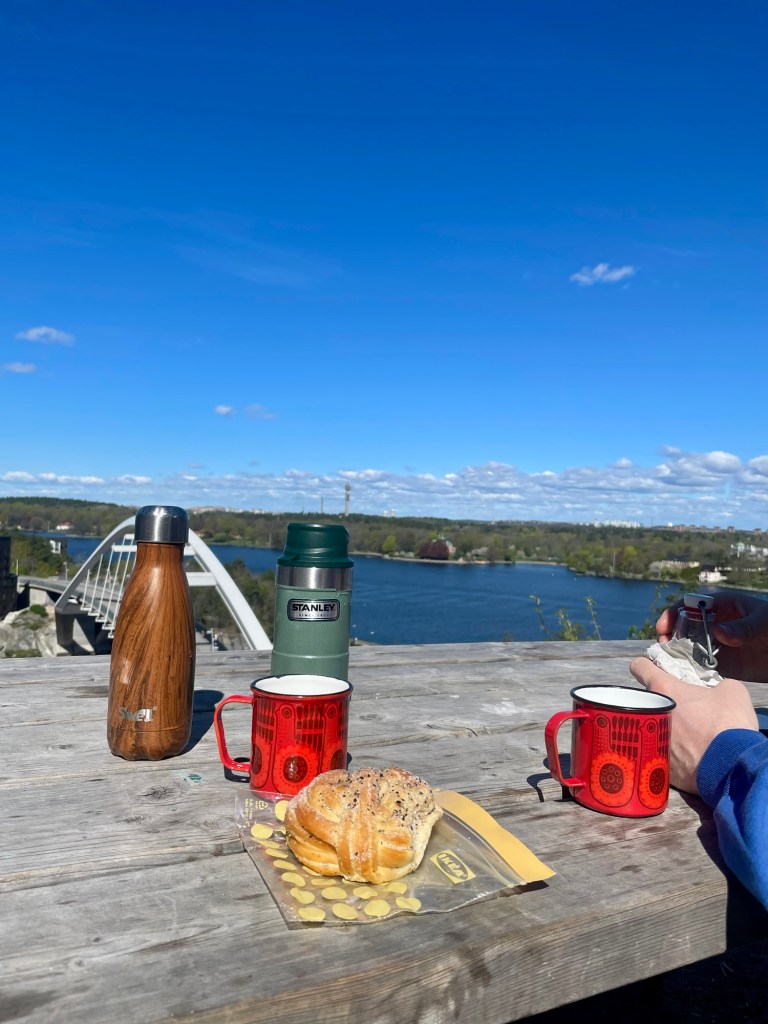 Efter frukost gick vi ut i skogen, besteg ett mindre berg och åt matsäck med utsikt över havet.