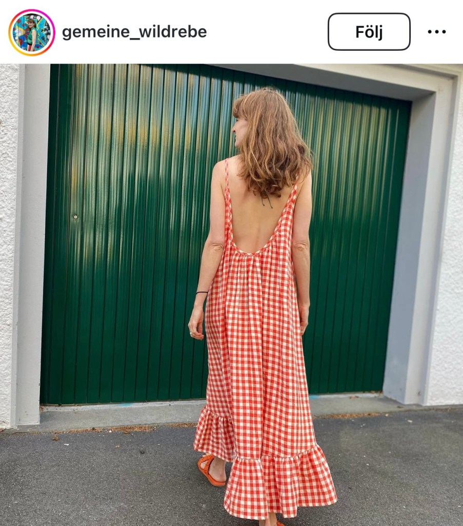 I veckan fick jag hem svartvitt ginghamtyg och det lutar mot en Hallonklänning, enbart på grund av denna bild. Jag har ju sytt ett par röda ginghamklänningar redan, men jag har svårt att inte se dem som julklänningar – så en svartvit känns märkligt nog somrigt.