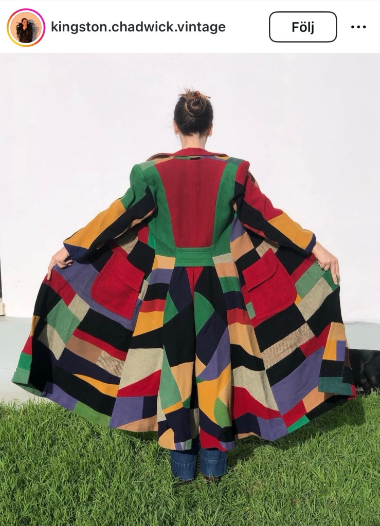 Och när det kommer till lapptäcke, denna otroliga coat of many colors från 40talet i olika bitar av färgad ylle är fantastisk. Känns svår att få till dock, hur hittar en så mycket likviktgat ulltyg i olika färger?