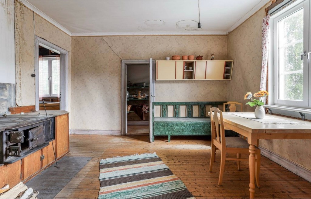 På övervåningen finns också ett gammeldagskök med vedspis, och en kallvind som en dag kanske blir något annat.