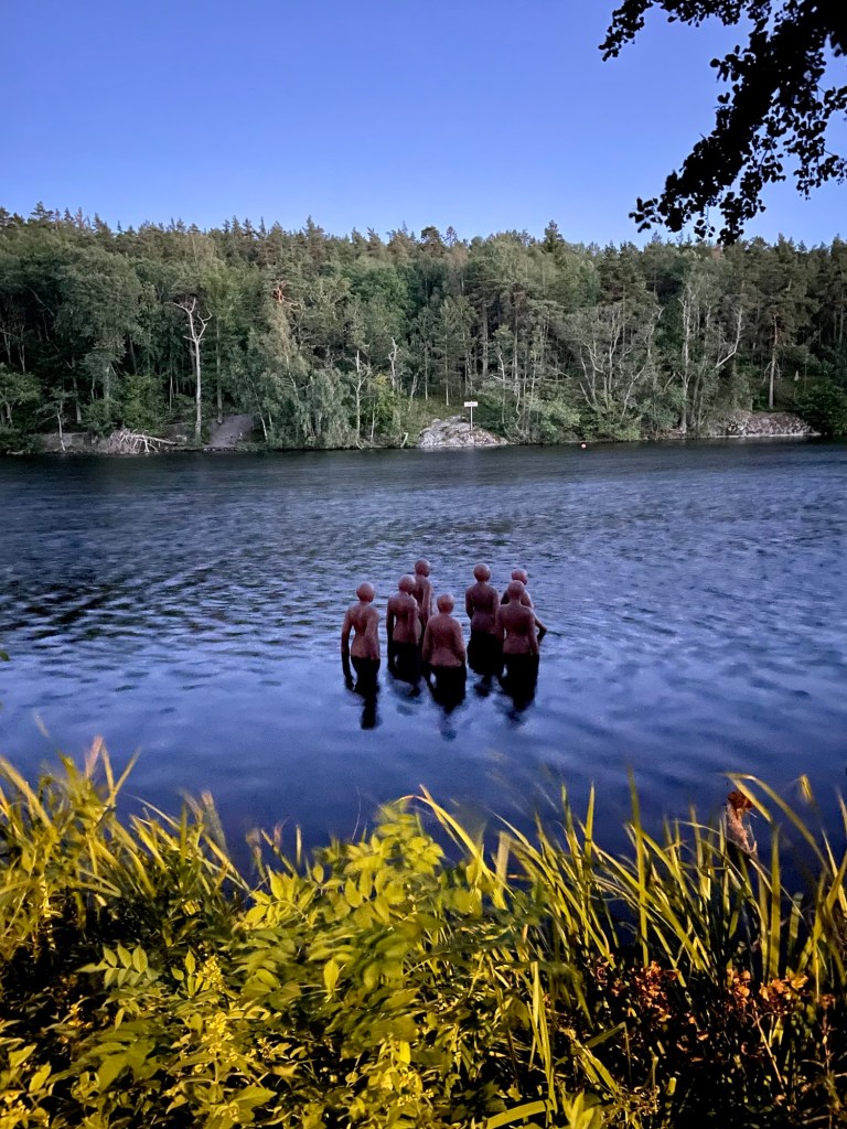 Som avslutning på semestern gick Fredde och jag en långpromenad runt Sickla sjön, kollade på alla konstverk och prövade tipspromenadsappen. Jag tog ett dopp just efter Evas sju döttrar-statyerna och sedan kvällsfikade vi hemma. Och så var hela den långa, fina semestern över.