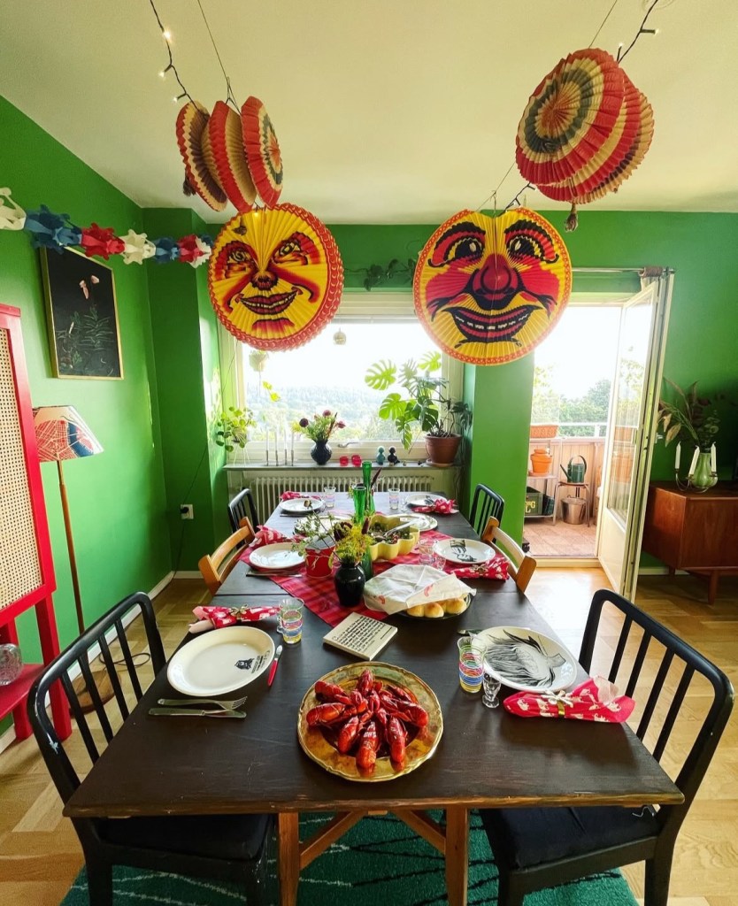 • Kräftskiva! Vi brukar ha en varje år, men i år har det inte blivit av, och alla helger framåt tycks uppbokade med annat. Men en liten tvåmanskräftskiva så att jag i alla fall får lufta allt fint pynt borde kunna hinnas med tycker jag.