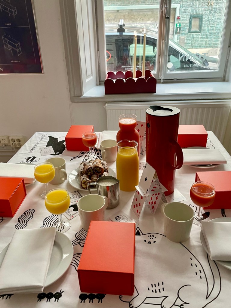På andra sidan stenen sitter Tônn, hyllföretaget. De har gjort ett samarbete med Maja Säfström och Maja skrev för någon vecka sedan och undrade om jag ville komma på pressfrukost. Det ville jag såklart gärna! Jag och Maja har följt varandra i flera år på internet, men det har aldrig blivit av att vi träffats, förrän nu.