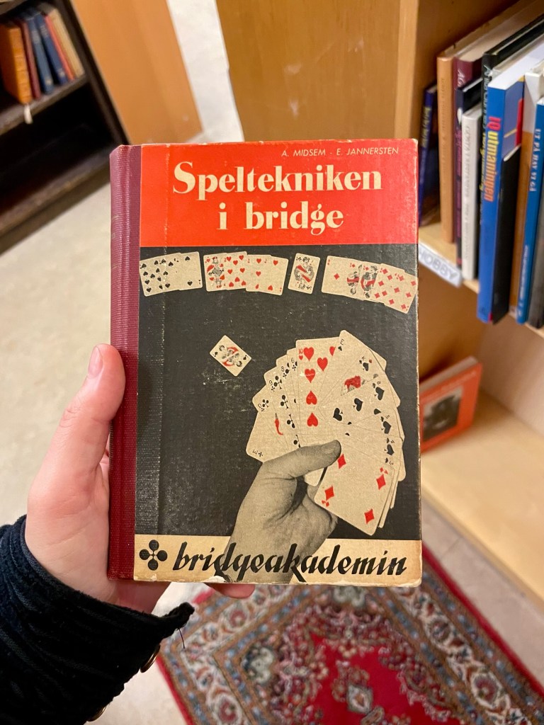 Till Röda Korset på Östgötagatan och mamma. Där klämde jag på en bridgebok och undrade om det var dags att lära sig nu när jag fått en så fin kortlek.