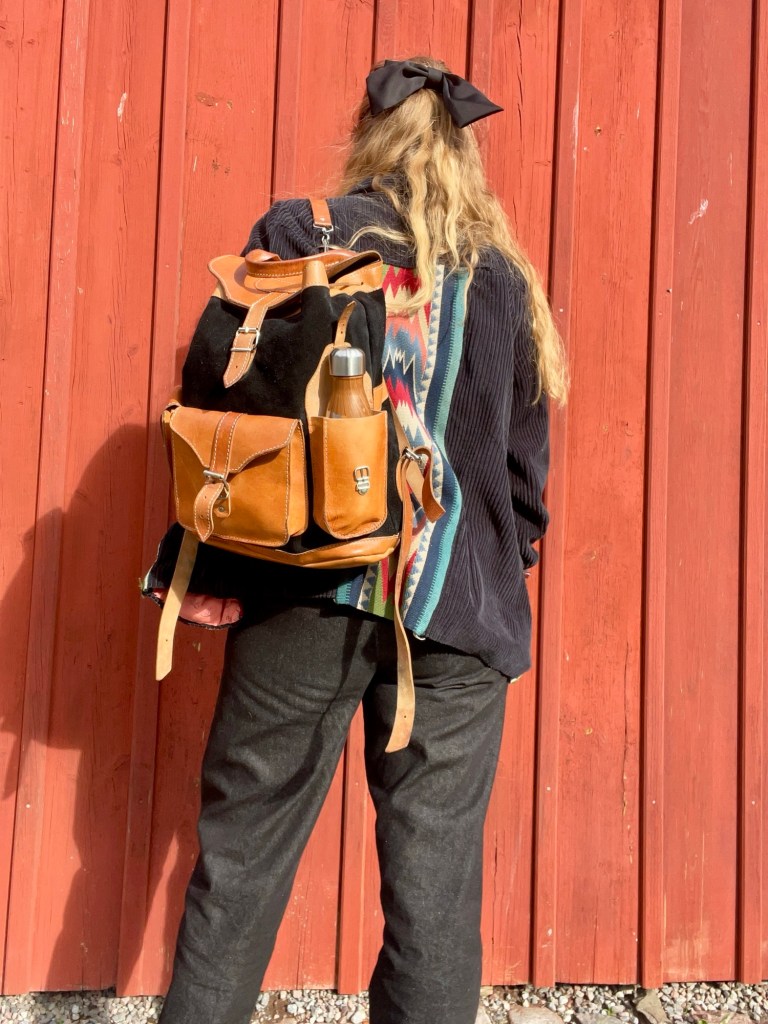 Även jackan är hemsydd, och ryggsäcken hittade jag i Norrtälje i helgen.