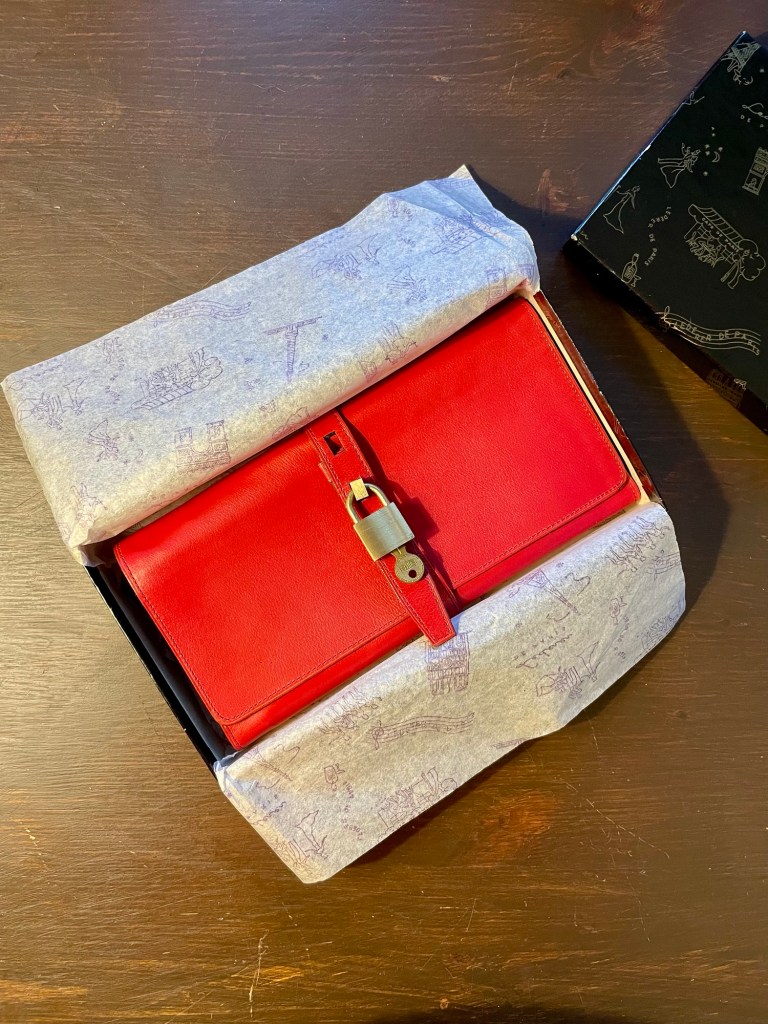 Inuti låg röd perfektion. Ni vet ju hur jag älskar röda grejor, och den senaste tiden har jag varit på jakt efter reserelaterade sådana. Så en vacker dag dök denna skönhet upp på Sellpy. Kalasdyr. Så jag har bevakat den i månader, sett priset sakta gå ner och oroat mig för att någon annan ska köpa trots att vi bara var två som hade sparat den.