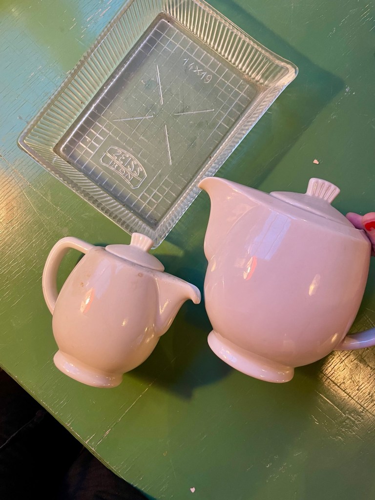 Men sedan blev jag lite rastlös ändå, och gick upp på kallvinden. Där har jag samlat allt jag hittat i huset som kan vara bra att ha. Som sex kannor i olika storlek från när huset var café. En av varje storlek fick flytta ner för en disk. Även vad jag trodde var en ugnsform, men det visade sig vara ett framkallningstråg. Oavsett är det rent nu!