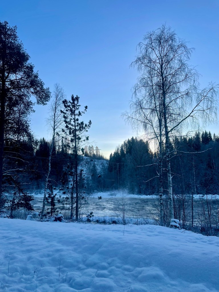 Så vi började dagen med en iskall men solig promenad till forsen.