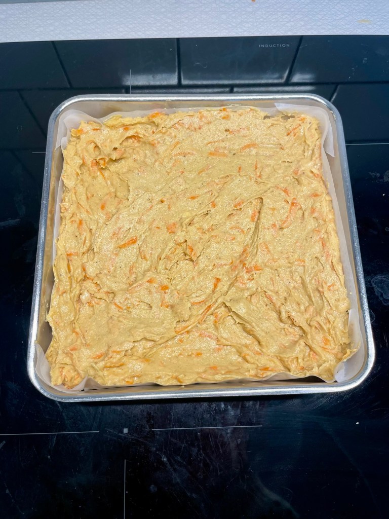 När paketet var färdigt tog jag mig an bakningen. Fredde hade önskat sig morotskaka och jag hittade ett recept på internet som verkade bra.