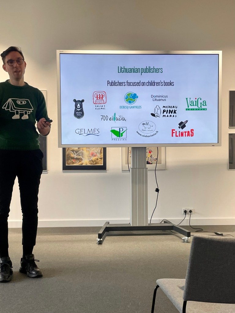 Efter introduktion av Litauens kulturråd var det dags för presentation från alla fellows. Det var jag från Sverige, en kvinna från Polen, en från Estland, en från Nederländerna, en från Tyskland och en från Italien. Och så presenterade även Benas, som driver en agentur i Litauen, litauisk litteratur.