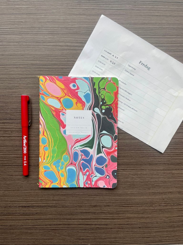 Först och främst har jag alltid med papper, jag är en analog människa som vill ha sina scheman och biljetter utskrivna. För sakens skull har jag även med skrivblock och penna, för det är alltid bra att ha.