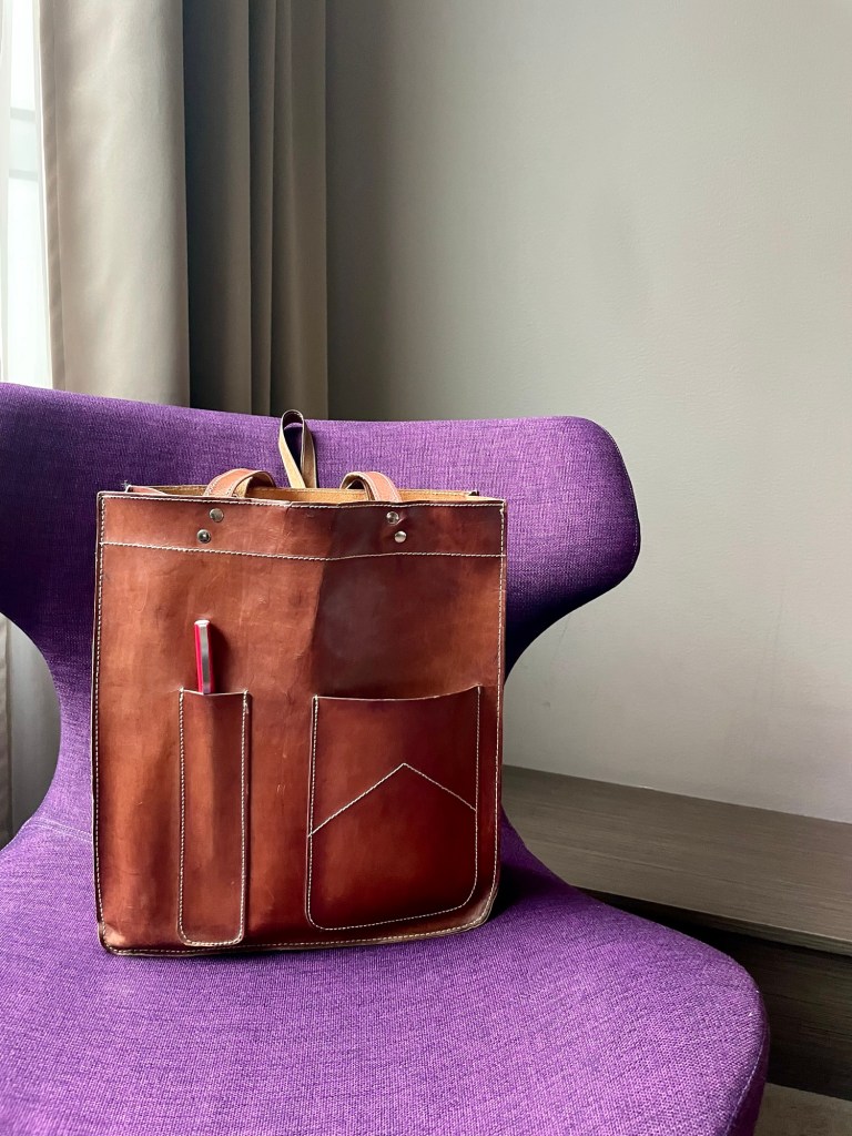 Det blir ju en del mässor i bokbranschen, och nu är jag på en igen, denna gång Littfest i Umeå. Jag tänker vi tar en klassisk i min väska, men mässvarianten. Väskan i fråga köpte jag på Vinted för några veckor sedan och den är min nya favorit. Som en stadigare tygkasse, rymmer allt men en hittar också i den. Och ytterfacken är en dröm.