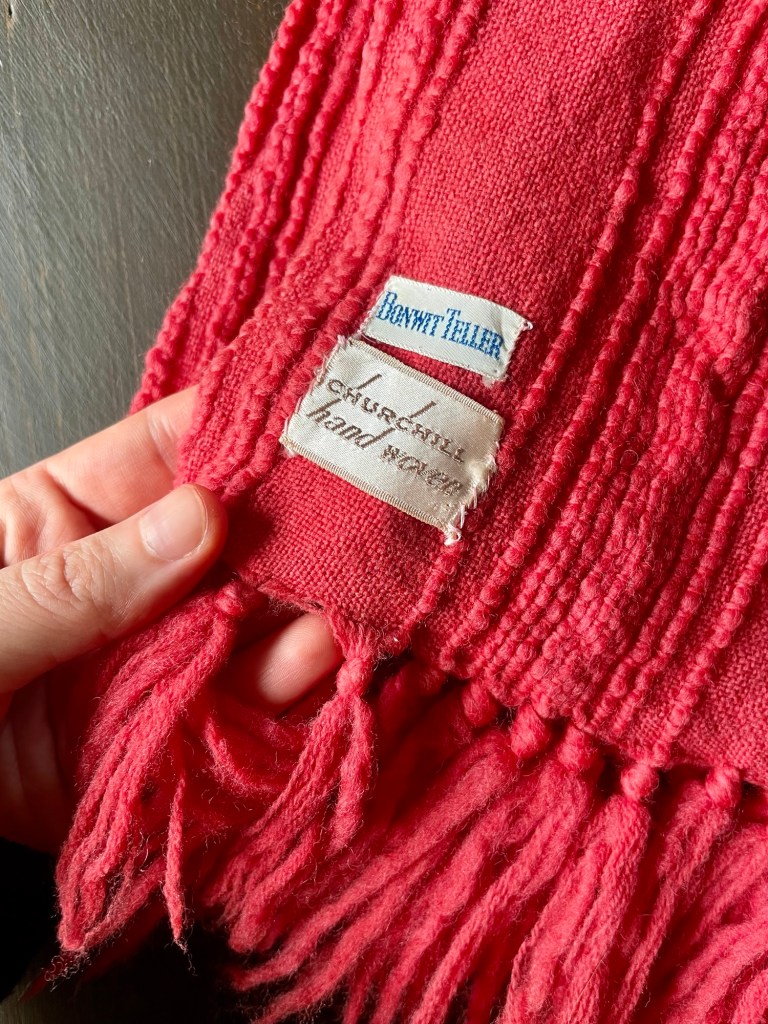 På Sellpy hittade jag en handvävd yllehalsduk från varuhuset Bonwit Teller, som var ett lyxvaruhus i New York. När jag köpte den var den benvit, men det rådde jag direkt bot på idag.
