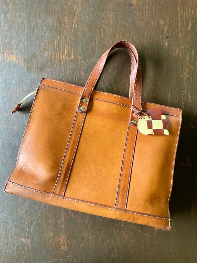 Nästan sist, men inte minst, ännu en Vintedfyndad vintageväska i läder. Ja, jag köpte nyligen en. Men. Denna är i liggande format, har dragkedja och en ficka på insidan istället för utsidan. Med andra ord, helt annorlunda.