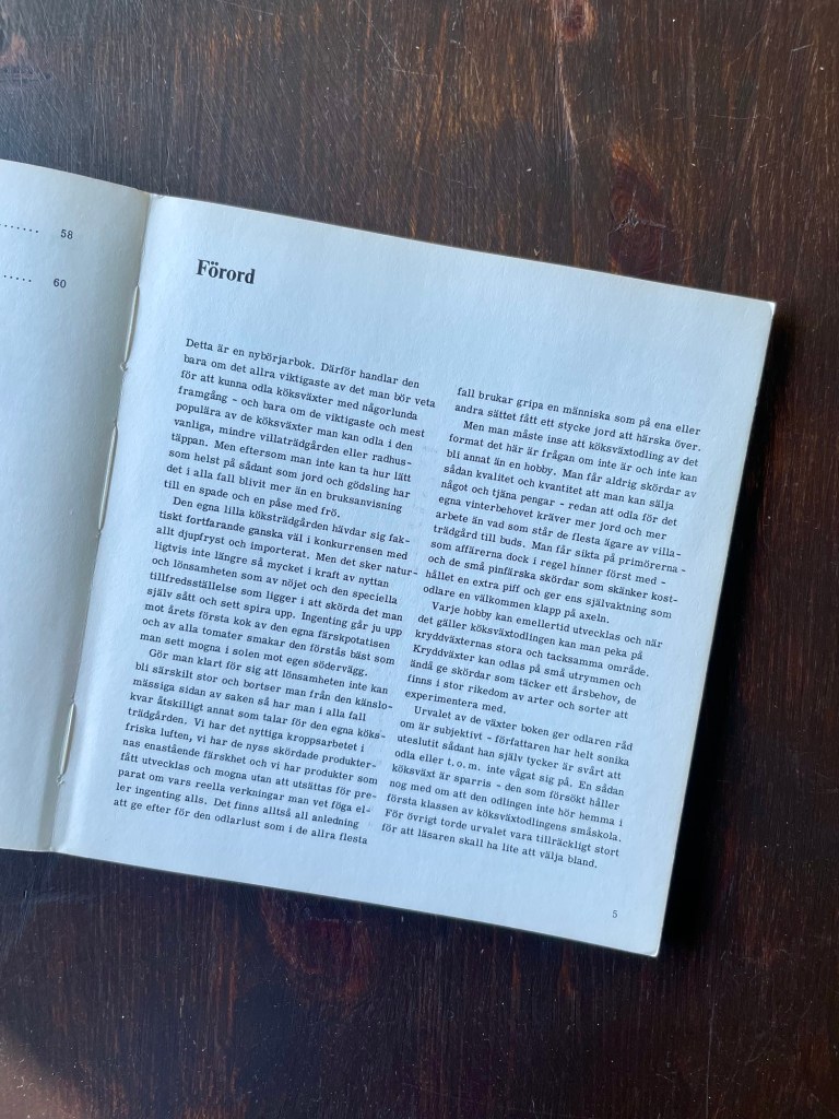 Jag håller hårt i min gamla bok Den lilla köksträdgården och planerar även ett potatisland samt att flytta jordgubbslandet och att ge hallonbuskarna en rejäl genomgång och uppstakning. Det finns ett par buskar jag vill riva upp med rötterna och helst skulle jag gärna plantera ett fruktträd eller två. I kylen står det lilla växthuset i glas med fläderfrö i sig, där det tydligen ska bo i två månader, och Karoline har lovat mig sticklingar från sin syrén. Dessutom skulle jag vilja ha en smultronschersmin och vågar jag öppna dörren till blomsterlökar? Förmodligen, och förväntningarna är skyhöga.