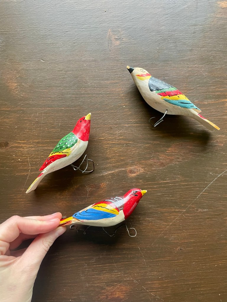 Såklart finns det några fåglar också. De här tre gamlingarna köpte jag på Återbruket för flera år sedan och jag vill minnas att de var dyra, typ 75 kr styck? Men jag kunde inte låta bli.