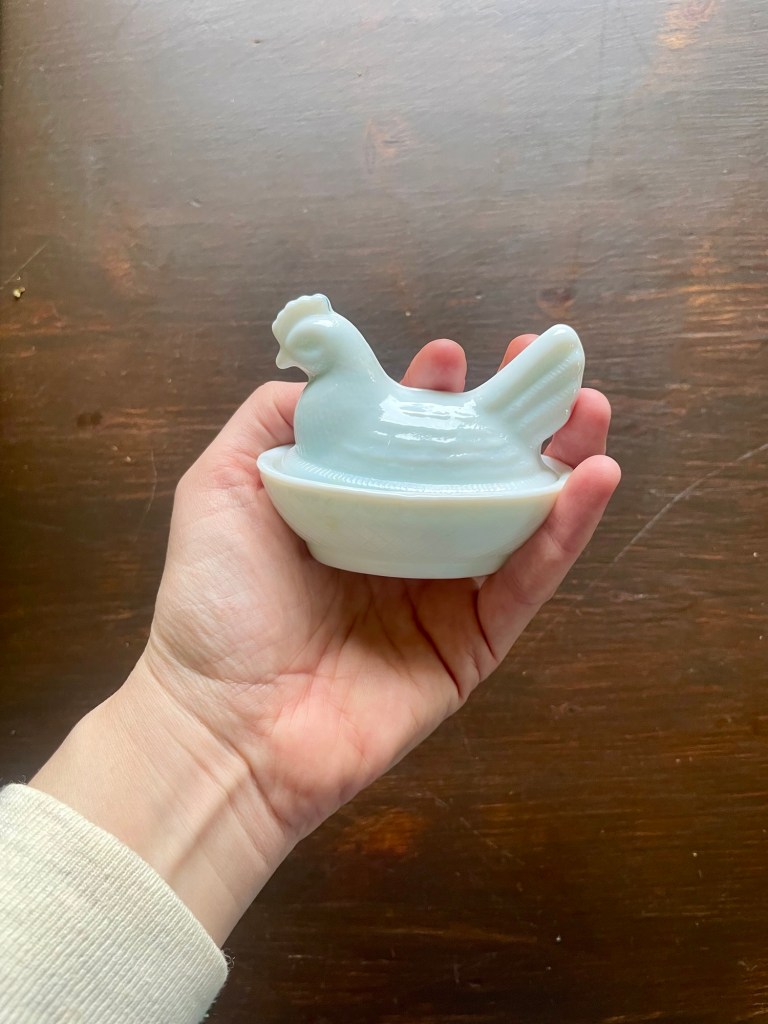 Jag har även en liten godisgömmahöna i mjölkglas, men skulle gärna ha en större. Fredde är dock rädd för fåglar, så det här är nog den största jag kommer undan med. Och det var hela pyntarsenalen.