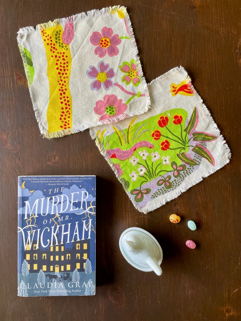 När jag hade fotat klart allt påskpynt gick jag till Lindra och hittade två Josef Frank-servetter i tyg, så de är numera påskservetter. Jag hämtade ut Murder of Mr Wickham som får bli min påskdeckarläsning, och köpte godisägg att fylla hönan med. Så får jag bara tag på lite påskliljor och kvistar blir det nog påsk i år igen!