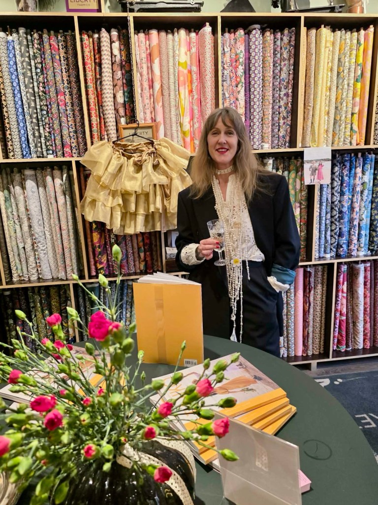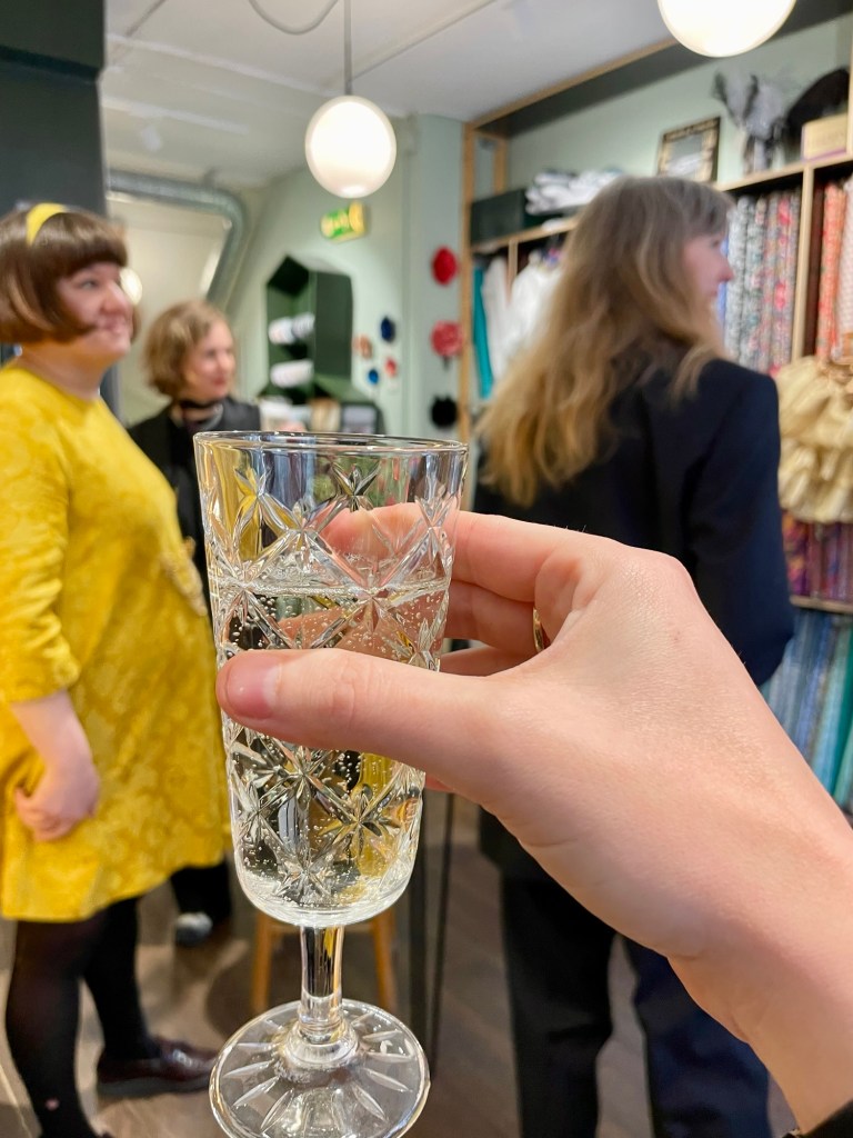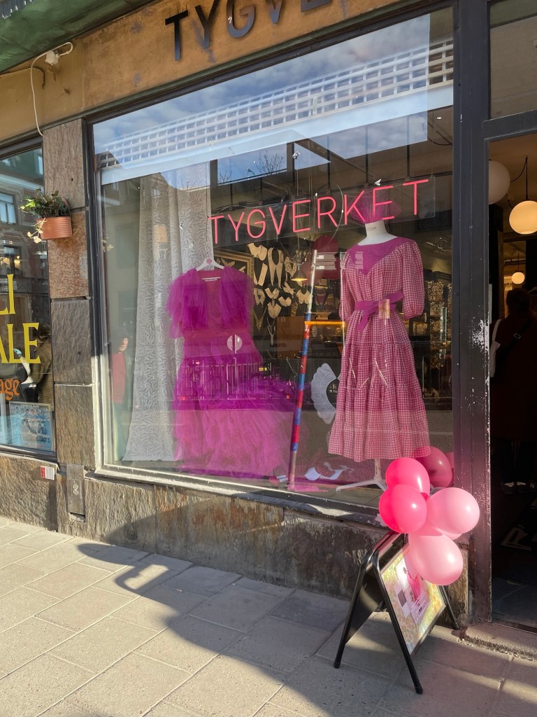 Som igår ordnade släppfest med mig och Stina Loving, som också har ett mönster med i numret! Jag kom dit vid 17 och Amanda hade skyltat så fint med våra klänningar i fönstret.