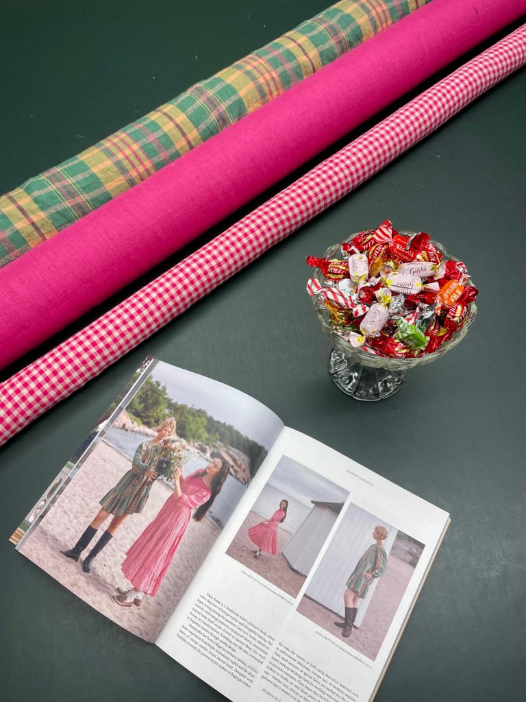 Temat för numret var nordisk sommar, och färgpaletten innehöll bland annat magenta och senapsgult, så för själa tidningen sydde jag två varianter av klänningen i rutigt linnetyg från Merchant & Mills, sponsrat av Tygverket.