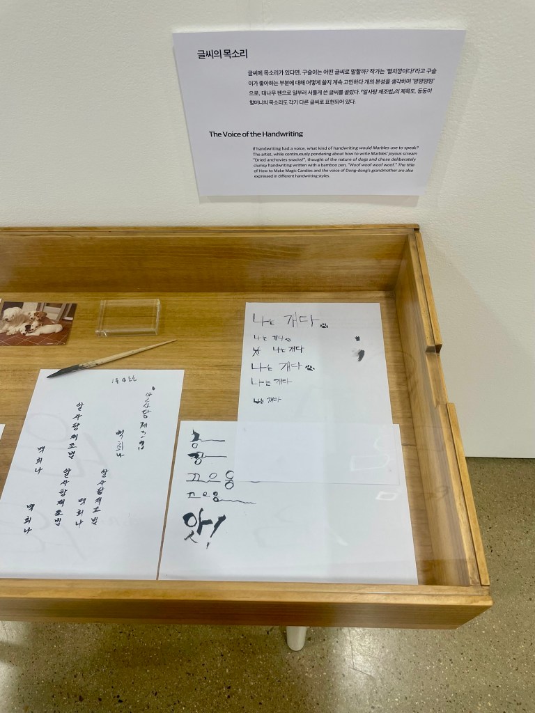 I fredags vaknade vi tidigt och tog oss efter frukost tillbaka till Palbok Art Factory, där Jeonjus internationella bilderboksfestival hölls. Jag skulle träffa koreanska agenter och förlag på förmiddagen, men hade en timma på mig, så jag passade på att kolla på utställningen med Sara Lundberg och Baek Heenas original.