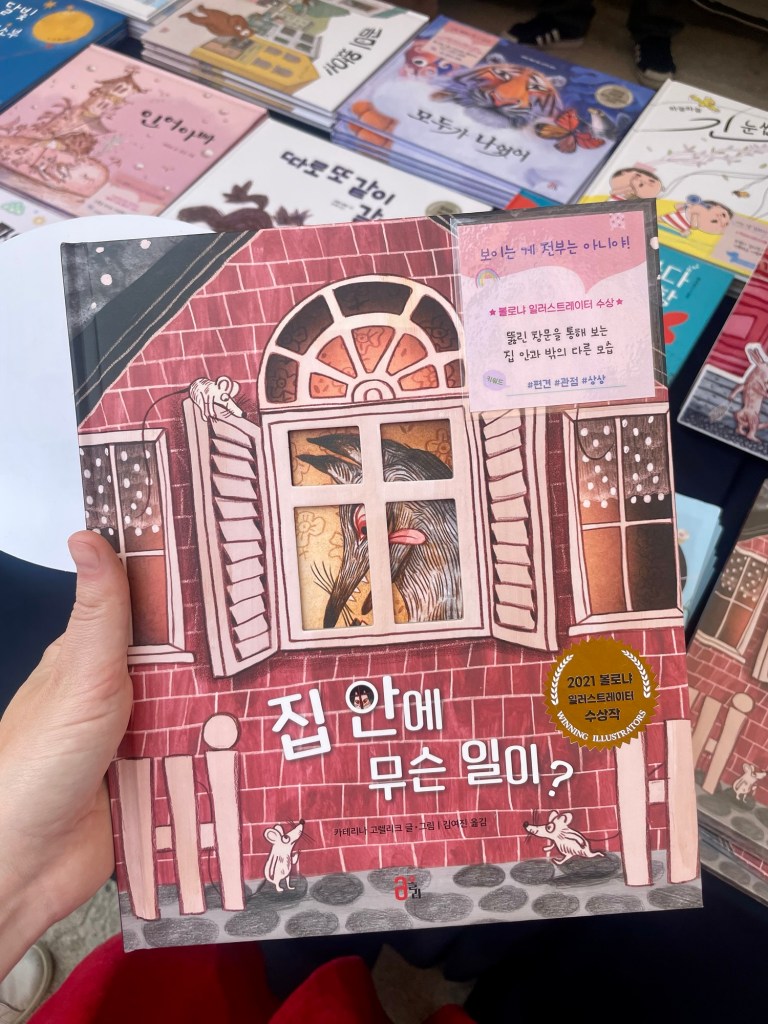 Däremot tittar jag på alla de koreanska förlagens bås och såg flera fina som jag gärna skulle ge ut på Trasten, som denna krångliga med riktiga hål för fönsterrutorna.