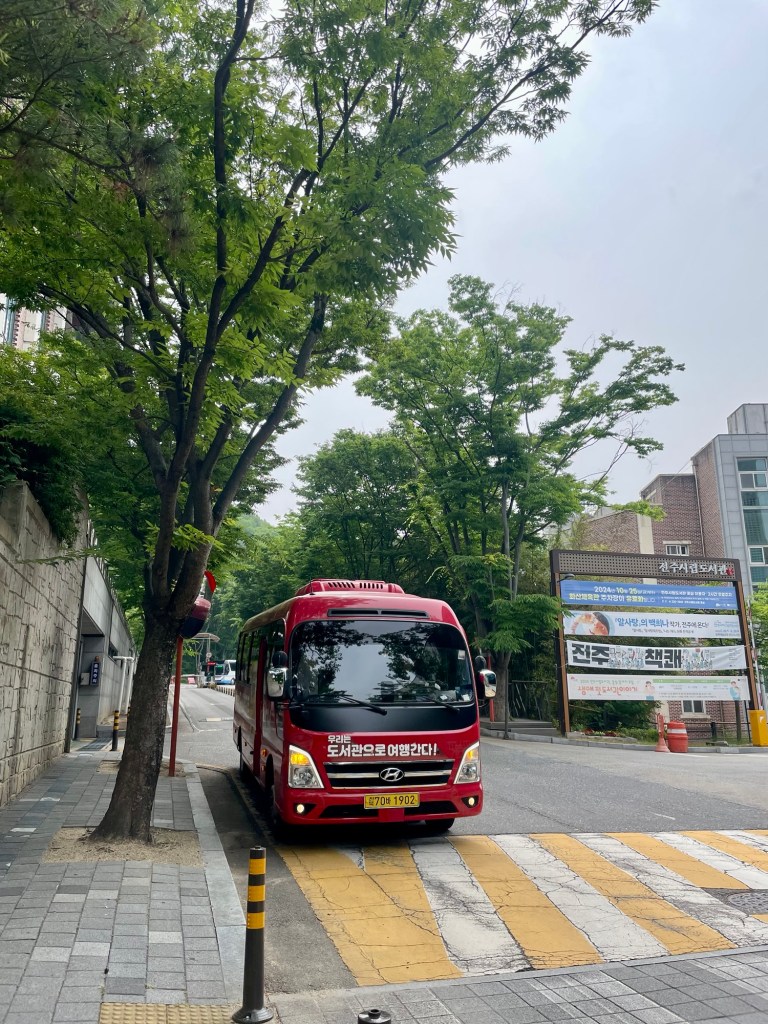 I lördags var jag fortfarande i Jeonju i Sydkorea, och det var dags för att hoppa på biblioteksbussen och åka på rundtur! Jeonju, som befolkningsmässigt har ungefär lika många invånare som Göteborg, har över 150 bibliotek. I hela Sverige finns det runt 280.