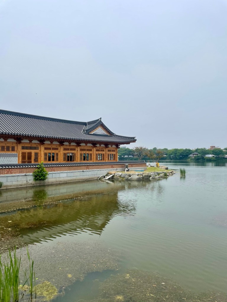 Sedan var det dags att åka vidare till dagens sista bibliotek. Byggt i hanokstil och belägen i en sjö.