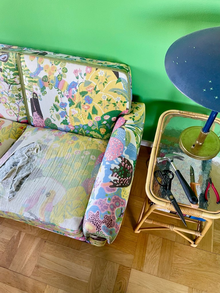Förra veckan började jag renovera vår soffa, och rivningsprocessen finns att läsa om här.