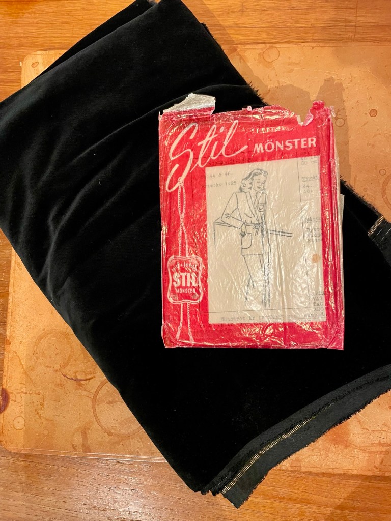 Först och främst detta pyjamasmönster. Jag har ju sytt ett antal pyjamasar de senaste åren, och behöver egentligen inte alls någon ytterligare. Jag tänkte därför att om jag syr den i sammet, och med tanke på mönstrets mer sjalaktiga krage, kan jag kanske komma undan med att kalla den loungedräkt. Något att stöka runt i på eftermiddagar när en egentligen borde ha klätt på sig riktiga kläder. Jag tror det skulle kunna bli ljuvligt. Men. När jag på kvällskvisten la ut mina svarta sammetsbitar på köksbordet visade det sig såklart inte räcka. Och jag kan inte släppa tanken på en ljuv loungedräkt i sammet, så nu inleds jakten på ytterligare bitar att komplettera med. Bevakningar har satts på secondhandappar och ögon är vässade för kommande loppisrundor.