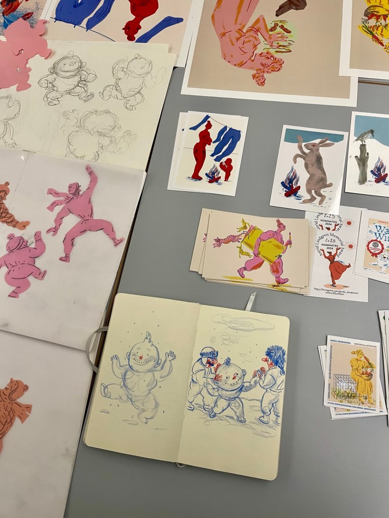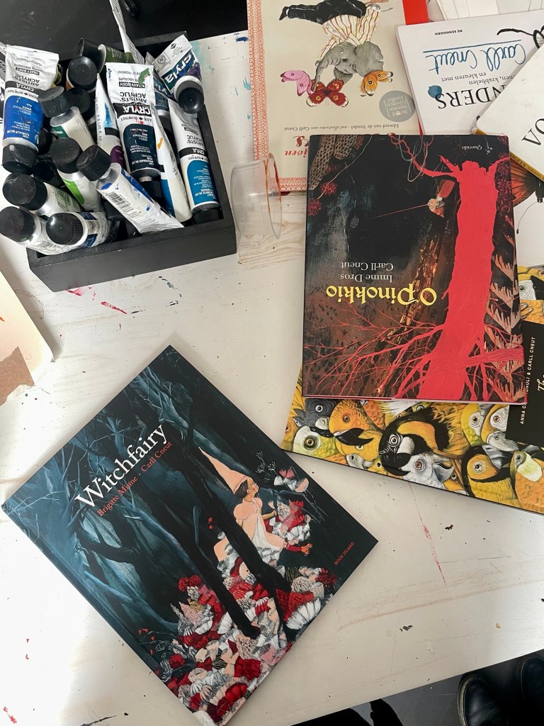 Torsdagen var en illustrationsdriven dag, först fick vi träffa tre illustratörer på Gents stadsbibliotek och höra dem prata om sina processer och böcker, och sedan gick vi vidare till Carll Cneuts ateljé.