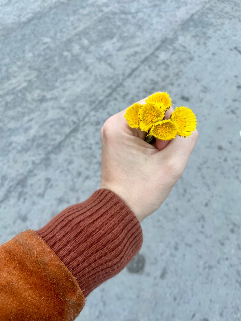 I slutet av förra veckan var det kallt, mörkt och grått. Jag tog på mig läppstift och en broderad vintageblus för att väcka lite vårkänslor.