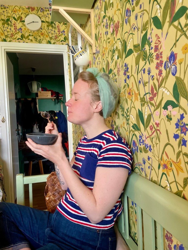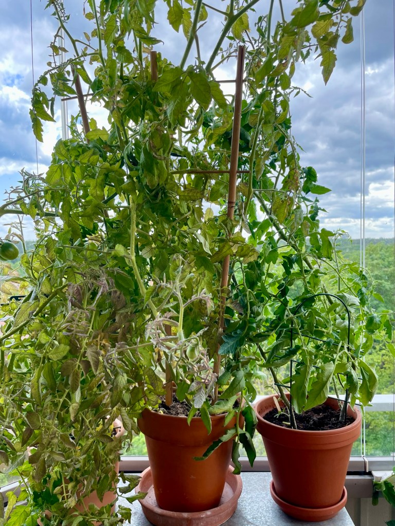 Runt kontoret växer det stockrosor i alla dess färger som nu börjat blomma ut. På vissa hade frökapslar dessutom torkat, så jag gick runt med sax. Dessa ska planteras nästa år! Tomaterna däremot skördade jag på min egen balkong, men är lika glad för det.