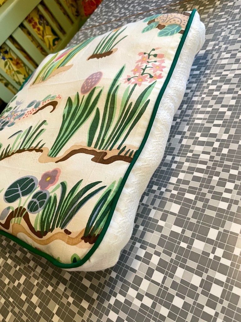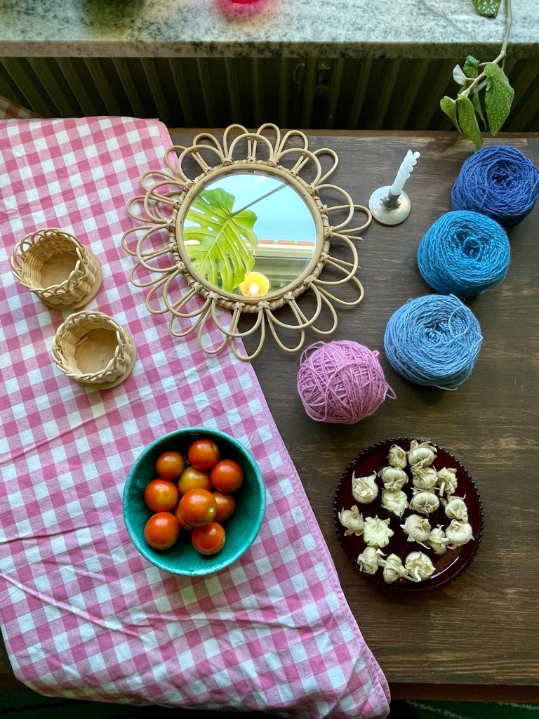 Tidigare i våras hittade jag en sådan här flaskhållare i flätad rotting, men i vinflaskestorlek. Nu fick jag tag på två i en mindre storlek för 10kr styck. Perfekt för öl- eller läsk! Spegeln fantiserar jag om att ha i en av husets kattvindar när vi gjort om det till gästrum. Den rutiga duken hade någon gjort sig av med i jobbets grovsopsrum, så den räddade jag. En gammal 90tals Ikea i bomull, om det räcker vill jag kanske sy en pyjamas av den.