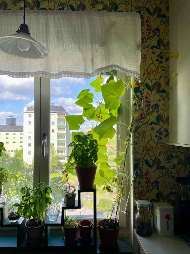 I tisdags vattnade och fotade min gurkplanta, för att se hur den växt. Sedan svepte jag en kaffe och tog mig till Arlanda.