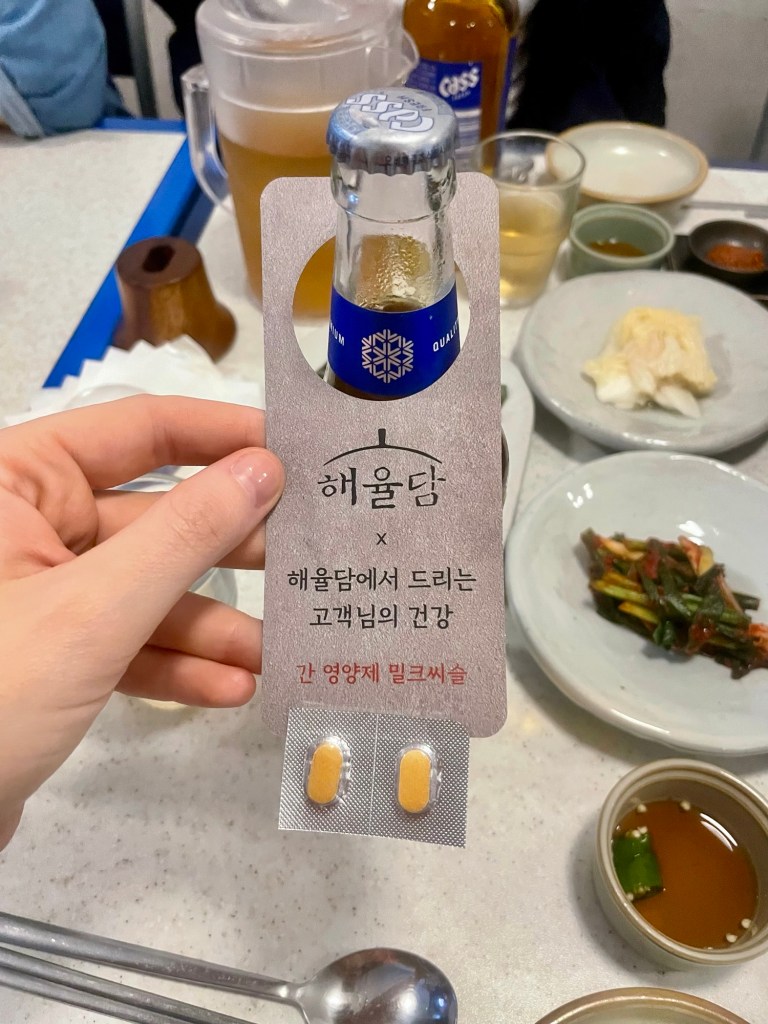 Här serverades ölen med piller. Om det däremot var för att bli mer full, mindre full eller mot leverskador var lite svårt att förstå.