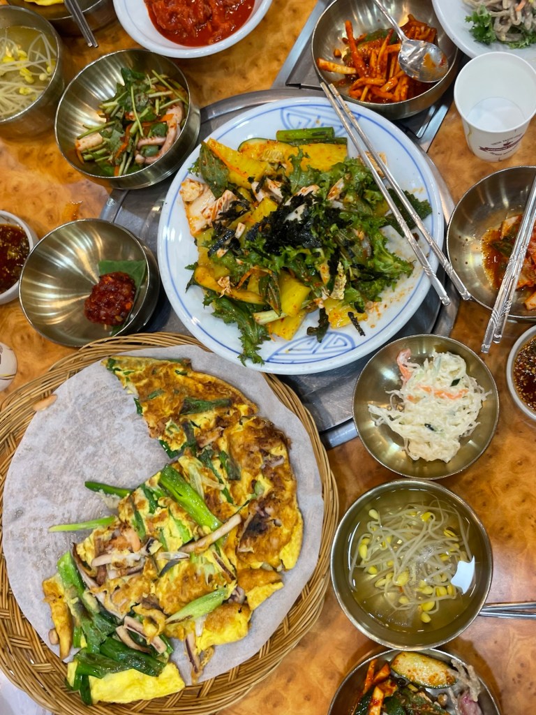 Bibimbap och massor av gott till, men jag höll mig långt borta från bläckfiskarna.