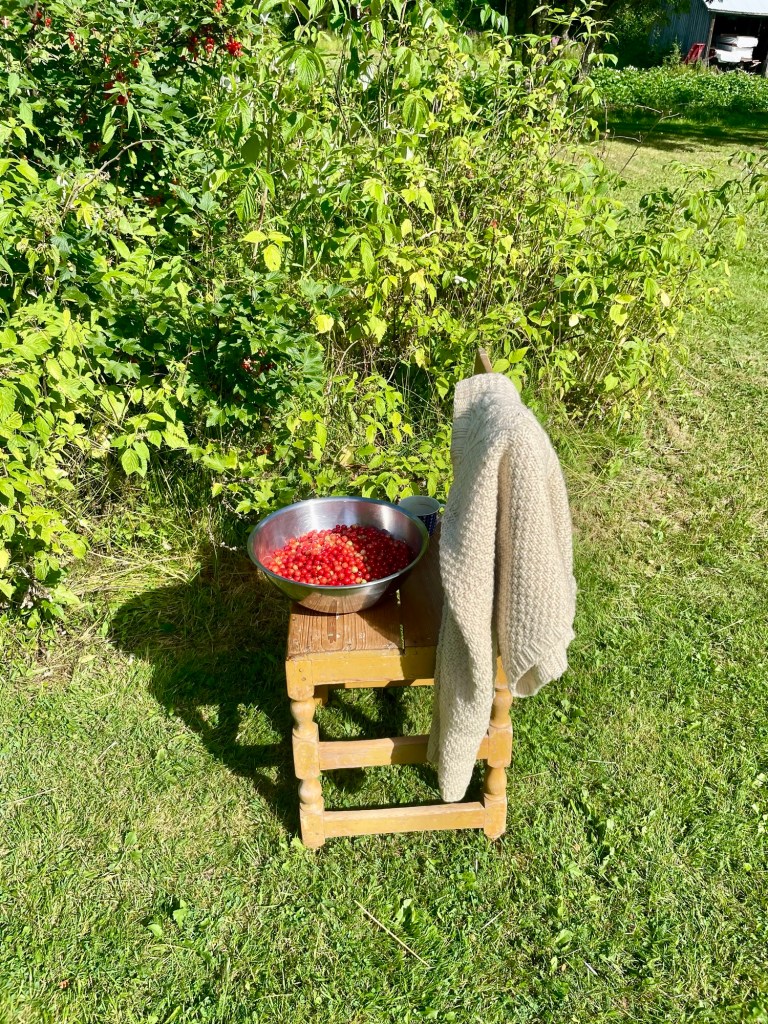 Kanske dagen efter, vem vet helt säkert?, sken solen och jag placerade mig framför mammas och pappas vinbärsbuskar med en bunke i famnen.