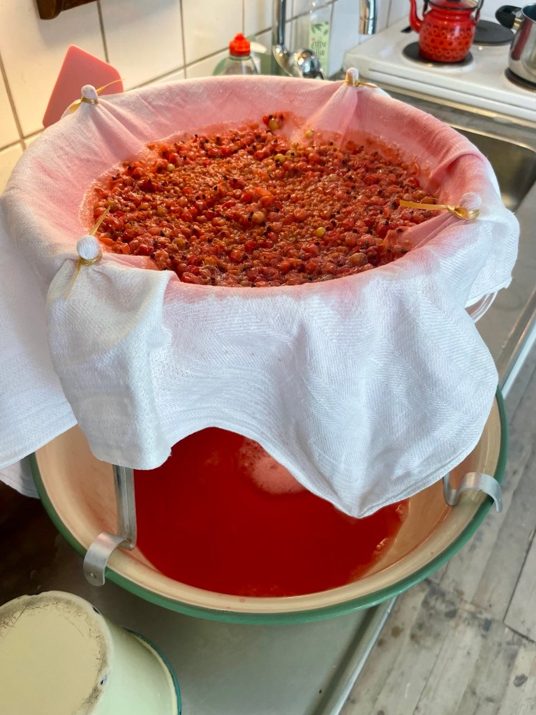 Igår tyckte jag att den obestämda tiden i kylen var över och jag silade saften.