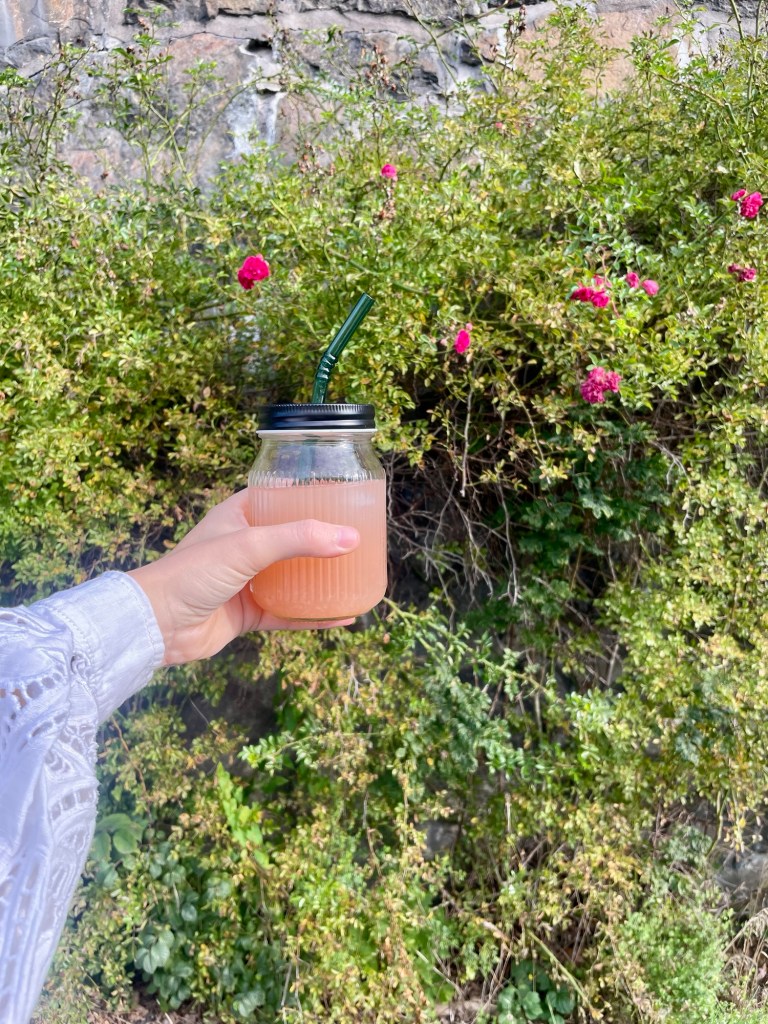 Bland annat köpte jag en sådan där burk med hål i locket. Sådana som jag hatar att hitta på loppis, för de är ju omöjliga att lägga in i. Men, ska jag vara benburen vill jag åtminstone ha en dryck i högsta hugg. Så den diskades och fylldes med jordgubbslemonad tidigt på söndagsmorgonen.