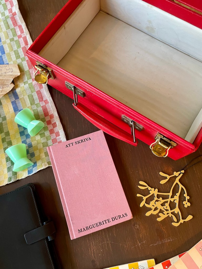 Den lilla röda resväskan är ljuvlig, om än både skitig och trasig. Men, den är dessutom lika bred som den andra röda resväskan är djup. Så när den är i rullande läge kan denna stå ovanpå och det skulle bli mina drömmars resekit. Så ja, nu är det bråda tider att göra klart bägge väskorna innan tåget till Bokmässan går den 24e.