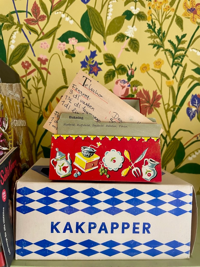 Jag klädde också om en loppisfyndad receptbok att ta med till köket i Agnäs. Tänker inte skriva upp browniereceptet i den.